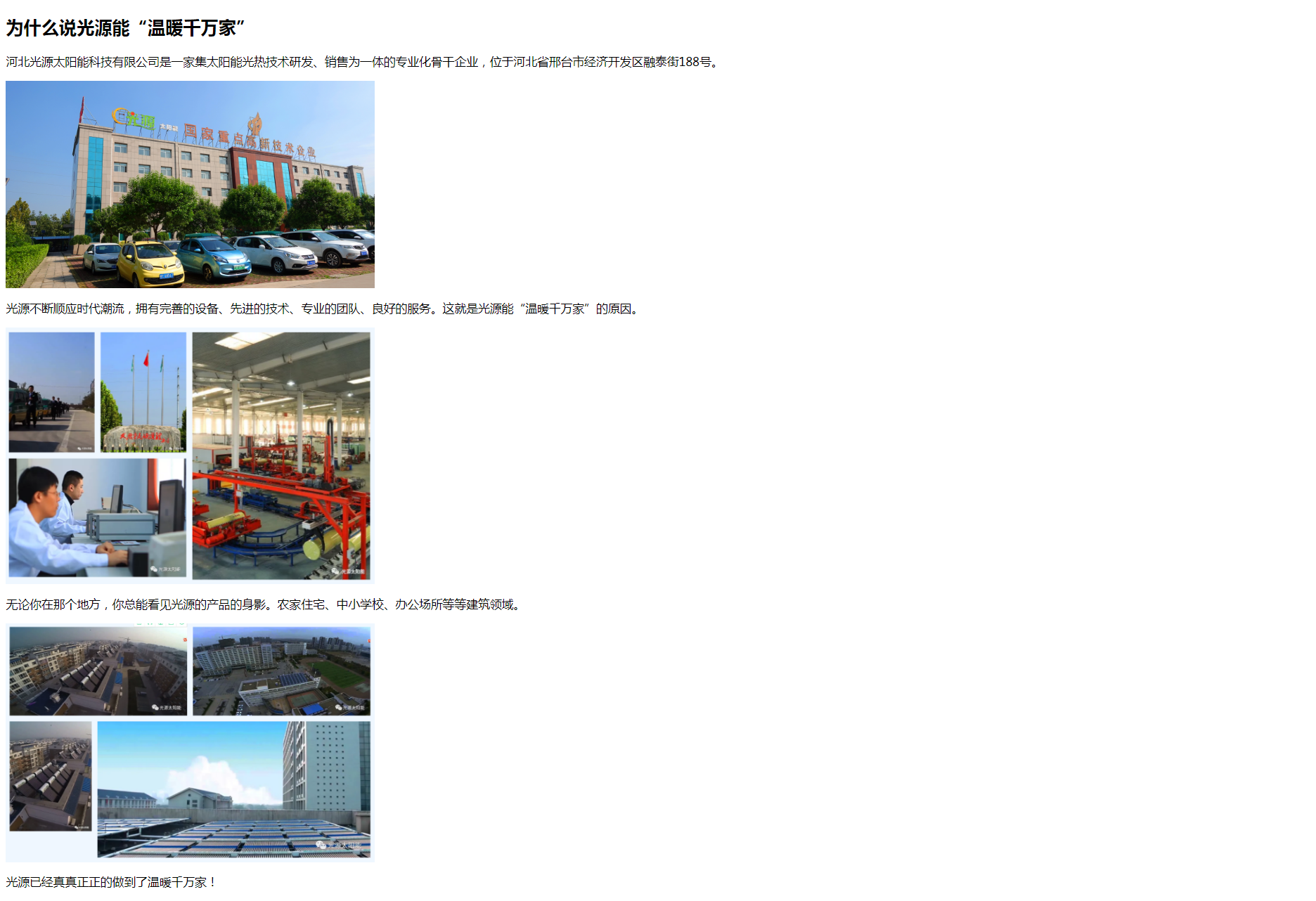 Copyright(C)2021 河北光源太陽(yáng)能 E-mail: hbguangyuan@163.com 地址: 邢臺(tái)經(jīng)濟(jì)開發(fā)區(qū)王快鎮(zhèn)北屋村永安路2199號(hào) 關(guān)于光源 | 公司動(dòng)態(tài) | 聯(lián)系我們 | 法律聲明